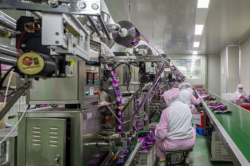 Мы располагаем более 100 единицами упаковочного оборудования для различных видов взрывной карамели. Современная и высокоскоростная автоматическая упаковочная машина для ламинирования производит 600 пакетиков в минуту, обеспечивая равномерный вес и привлекательный внешний вид продукции. Продаваемая упаковка - важный аспект в продвижении вашего бизнеса в пищевой промышленности.